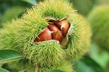 板栗是中國(guó)栽培最早的果樹之一,已約有2000~3000年的栽培歷史。葉披針形或長(zhǎng)圓形,葉緣有鋸齒?;▎涡?,雌雄同株;雄花為葇荑花序,成熟后總苞裂開,栗果脫落。堅(jiān)果紫褐色,被黃褐色茸毛,或近光滑,果肉淡黃。果實(shí)含糖、淀粉、蛋白質(zhì)、脂肪及多種維生素、礦物質(zhì)。