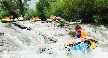 統(tǒng)里村內(nèi)有水庫一座,即石馬水庫,水域面積近50畝,庫容達25萬立方米。石馬灣漂流就位于石馬水庫的下游,石馬灣漂流的得名也由此而來,石馬灣河水清澈,綠波瀅瀅。沿河兩岸綠樹婆娑,鳥鳴蟲唱,生意盎然。置身漂伐中,有回歸大自然的無限情趣。石馬灣漂流全長3公里,漂流完全程需1小時30分鐘。石馬灣回環(huán)曲折 ,或急或緩,撫清清綠水,攬山川佳境,物我共忘,心機陶然。伐中可隨波逐流,喁喁長談,敘青春委婉真情,也可拍浪嘻戲,尋少年之笑語歡歌。漂流之程有多長 ,快樂之心有多遠。領(lǐng)略游歷高山流水的愜意,品嘗豐富的名吃特產(chǎn),這種享受讓人體會了超然逍遙的美妙,相信這種漂流會讓每個人都有自己的回憶,自己的珍藏。