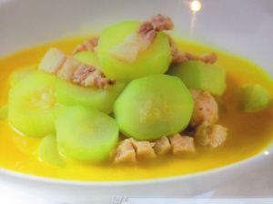 咸骨燉山藥。雖然這道湯的原料大家都再熟悉不過了,但可別認為這就是普通的咸骨熬制的,它的腌制方法和普通腌制不一樣,采用的是廣式特有的腌制法,咸鮮味就不言而喻了。山藥中還含有大量淀粉及蛋白質(zhì)、B族維生素、維生素C、維生素E、葡萄糖、粗蛋白氨基酸等,具有健脾、補肺、除濕、補氣等多種功效。